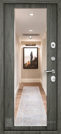 Темная дверь для квартиры с зеркалом Максимум №44 может быть дополнена стеклопакетом, коваными элементами или видеодомофоном, что делает её не только безопасной, но и максимально удобной в эксплуатации.